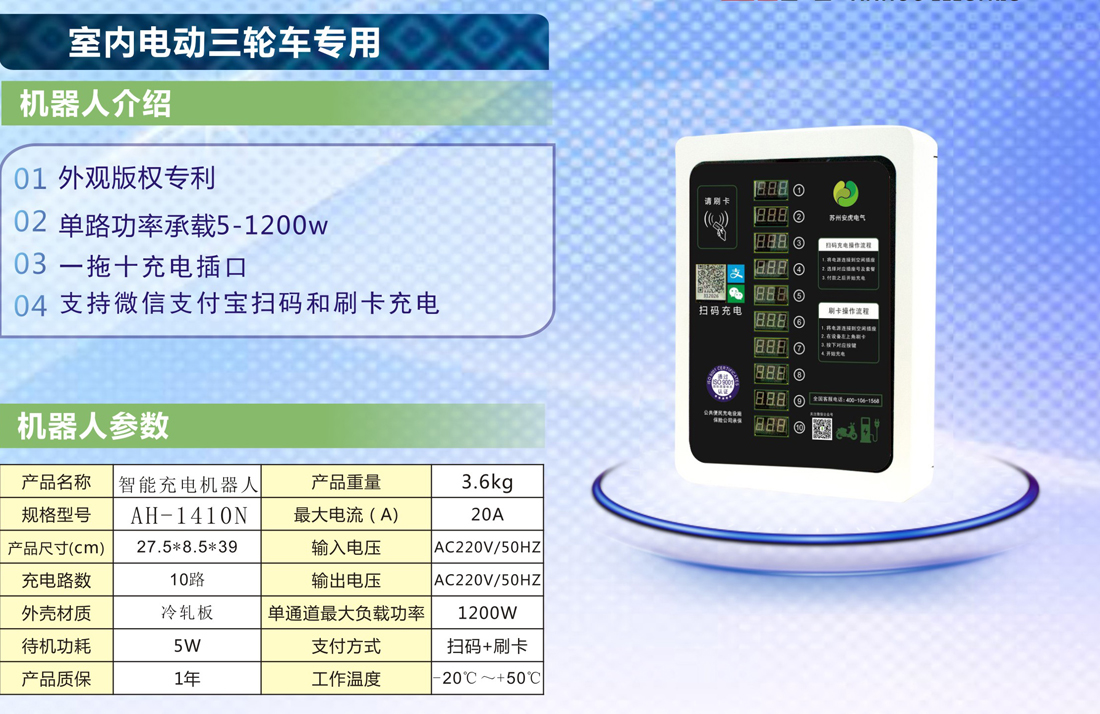 10路室内三轮车充电机器人 AH-1410N / 价格:1428元